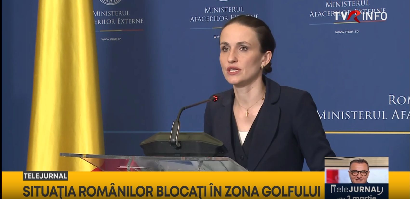 În prezent sunt 14.000 de cetățeni români în Emiratele Arabe Unite, dar există un număr minim de cazuri de urgență extremă, a declarat, luni, ministrul Afacerilor Externe, Oana Țoiu. ‘Estimarea autorităților este că păstrarea azi-mâine a locului actual în care se află cetățenii români este varianta recomandată’, a afirmat șefa diplomației române, în cadrul unui […] The post Oana Țoiu: 14.000 de români sunt în Emiratele Arabe Unite. Sunt sfătuiți să nu plece din locurile în care stau appeared first on tvrinfo.ro .