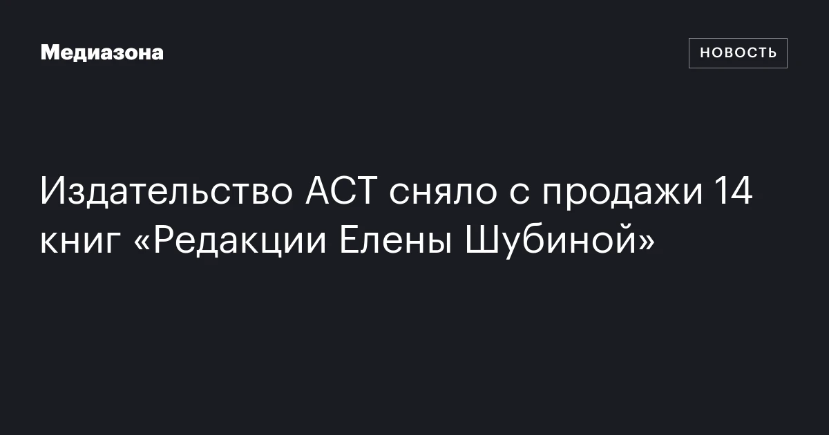 Издательство АСТ сняло с продажи 14 книг «Редакции Елены Шубиной»