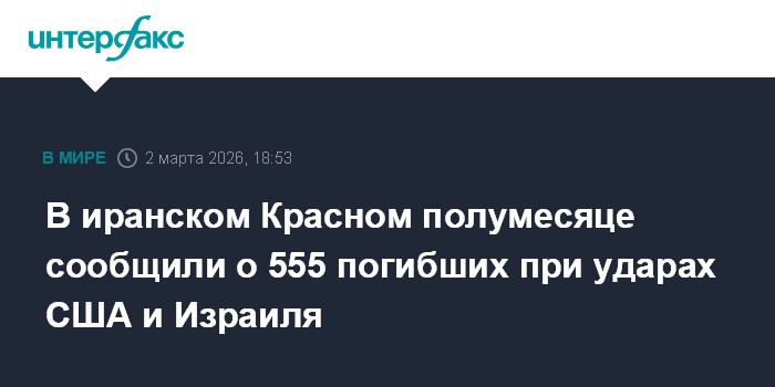 По меньшей мере 555 человек погибли с субботы при ударах США и Израиля по Ирану, сообщает в понедельник телеканал Press TV со ссылкой на Общество Красного полумесяца Исламской Республики.