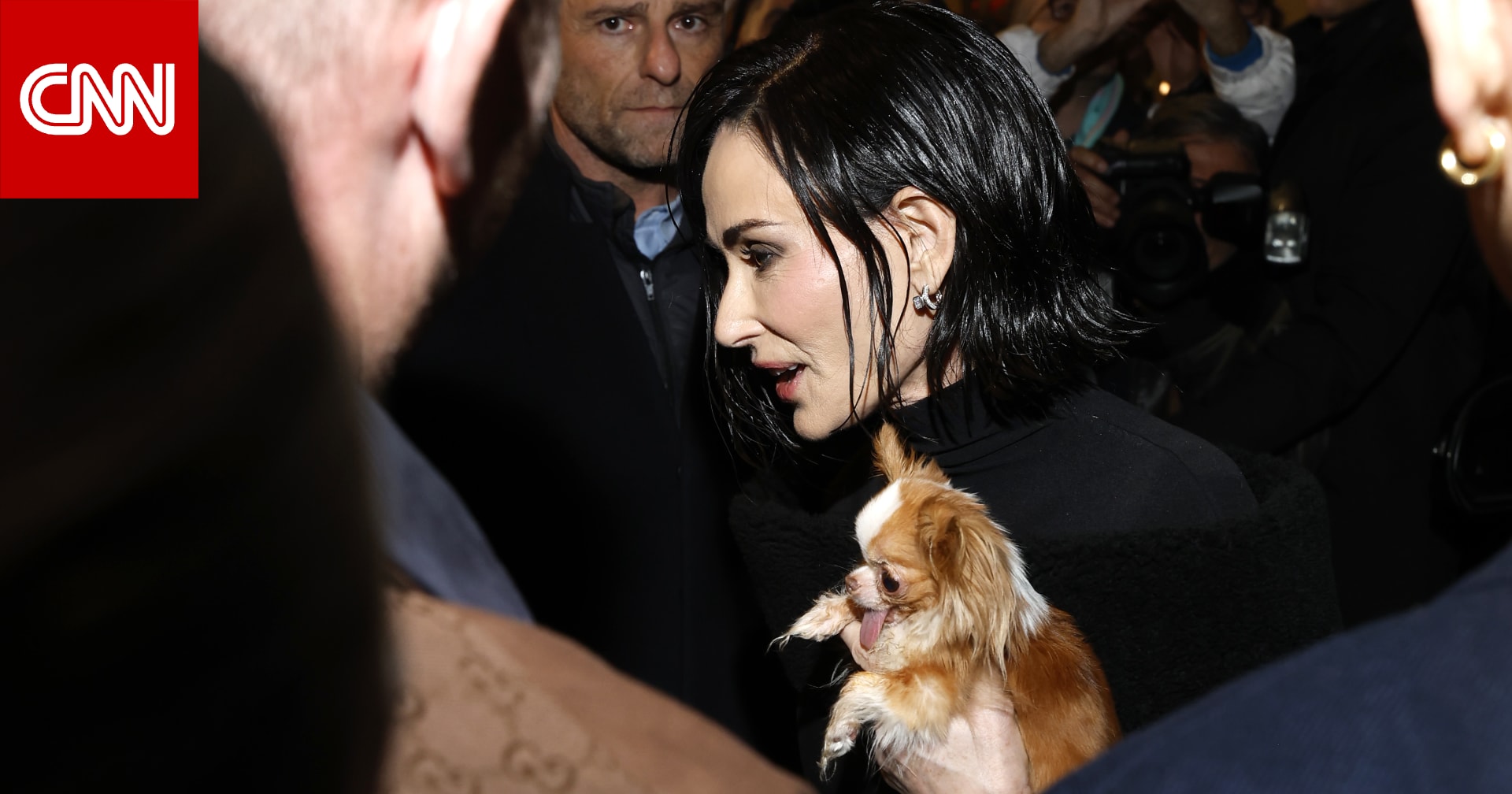 ديمي مور تلفت الأنظار برفقة كلبها في ميلانو خلال حضورها عرض دار "غوتشي" ضمن فعاليات أسبوع الموضة