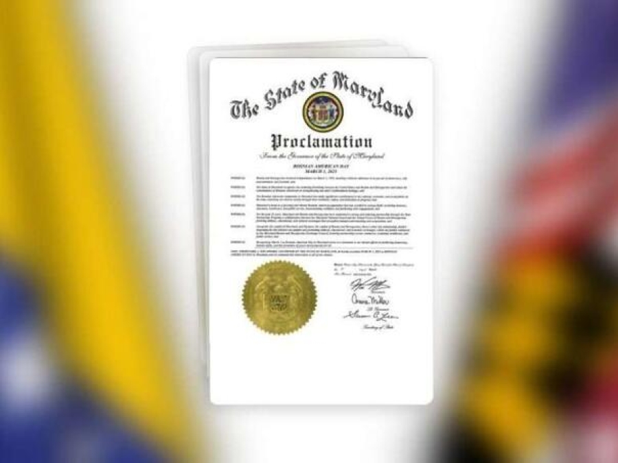 Guverner Wes Moore proglasio je 1. mart Bosansko-američkim danom u američkoj saveznoj državi Maryland, odajući priznanje nezavisnosti Bosne i Hercegovine i doprinosu bosanskohercegovačke zajednice u toj državi.