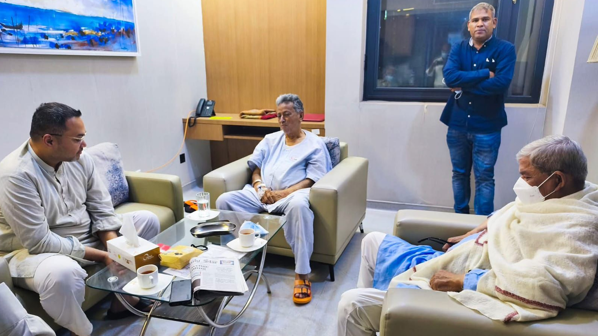 অর্থ ও পরিকল্পনামন্ত্রী আমীর খসরু মাহমুদ চৌধুরী শারীরিক অসুস্থতা নিয়ে রাজধানীর ইউনাইটেড হাসপাতালে চিকিৎসাধীন রয়েছেন। তাকে দেখতে হাসপাতালে গেছেন স্থানীয় সরকারমন্ত্রী মির্জা ফখরুল ইসলাম আলমগীর।সোমবার (২ মার্চ) সন্ধ্যার দিকে তিনি গুলশানের ইউনাইটেড হাসপাতালে যান।হাসপাতাল সূত্রে জানা যায়, মির্জা ফখরুল ইসলাম আলমগীর হাসপাতালে গিয়ে তার দীর্ঘদিনের রাজনৈতিক সহযোদ্ধা ও বর্তমান মন্ত্রিসভার সতীর্থ আমীর খসরু মাহমুদ চৌধুরীর শারীরিক অবস্থার খোঁজখবর নেন।এ সময় তিনি কর্তব্যরত চিকিৎসকদের সঙ্গে কথা বলেন এবং চিকিৎসার অগ্রগতির বিষয়ে বিস্তারিত জানেন। তিনি অসুস্থ অর্থমন্ত্রীর আশু রোগমুক্তি কামনা করেন।আরও পড়ুন: হাসপাতালে অর্থমন্ত্রী আমীর খসরুঅর্থমন্ত্রীর শয্যাপাশে এ সময় উপস্থিত ছিলেন প্রধানমন্ত্রীর উপদেষ্টা মাহদী আমিন। তিনিও চিকিৎসকদের সঙ্গে কথা বলেন এবং সরকারের পক্ষ থেকে চিকিৎসার বিষয়ে সব ধরনের সহযোগিতার আশ্বাস দেন।অসুস্থতা বোধ করায় গত শনিবার (২৮ ফেব্রুয়ারি) অর্থমন্ত্রী আমীর খসরু মাহমুদ চৌধুরীকে রাজধানীর ইউনাইটেড হাসপাতালে ভর্তি করা হয়। বর্তমানে তিনি সেখানে বিশেষজ্ঞ চিকিৎসকদের নিবিড় পর্যবেক্ষণে রয়েছেন।
