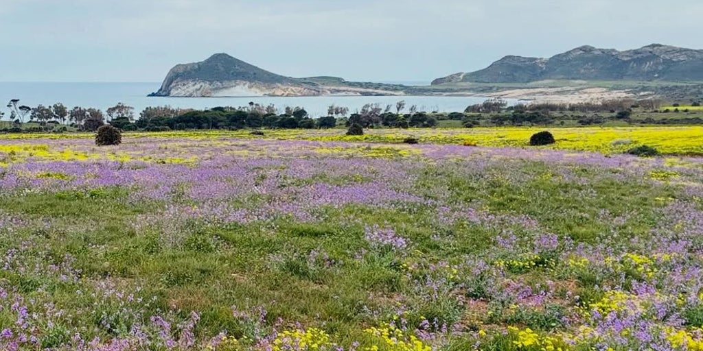 Las borrascas de los últimos meses ha propiciado una primera adelantada en el Parque Natural Cabo de Gata-Níjar en Almería. Este espacio protegido alberga una de las mayores riquezas de flora del continente europeo. Cerca del 95% de las especies son planta autóctonas, adaptadas a las condiciones áridas de esta zona. En un entorno dominado habitualmente por tonos marrones y ocres, la floración invernal deja imágenes poco habituales en este paisaje árido y volcánico. Desde hace unas semanas ya se puede ver el conocido azafrán del Cabo, con un color blanco y morado en el centro, el dragoncillo con pequeñas flores fucsias, la margarita de mar con su amarillo intenso y otras especies como lavanda, lentejuela o incluso tomillo, entre... Ver Más