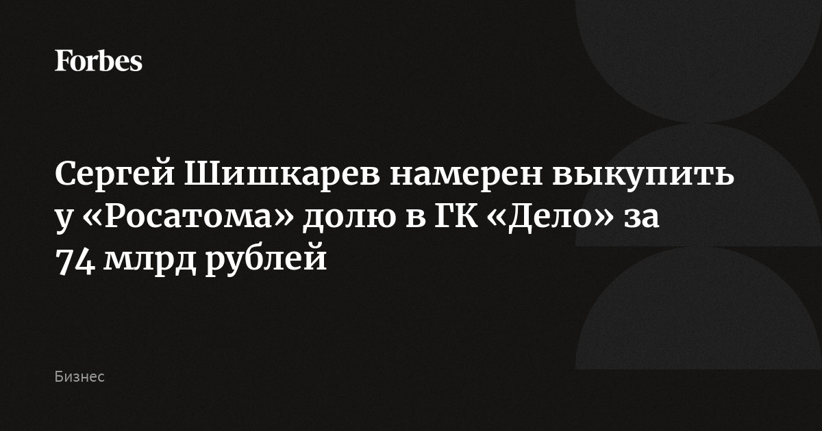 Сергей Шишкарев намерен выкупить у «Росатома» 49-процентную долю в ГК «Дело» за 74 млрд рублей, сообщает РБК со ссылкой на представителя бизнесмена. В пресс-службе «Рос