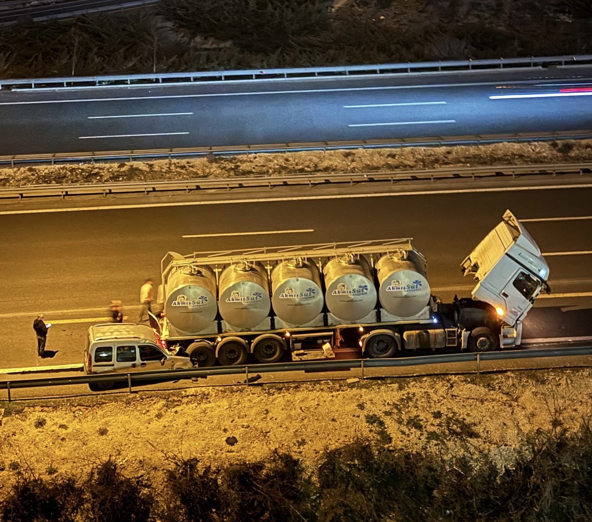 Gaziantep’te akşam saatlerinde meydana gelen trafik kazası yürekleri ağza getirdi. İbrahimli Gölgelik Kavşağı’nda arıza nedeniyle yol kenarında bulunan süt tankerine arkadan çarpan ticari araç hurdaya döndü.