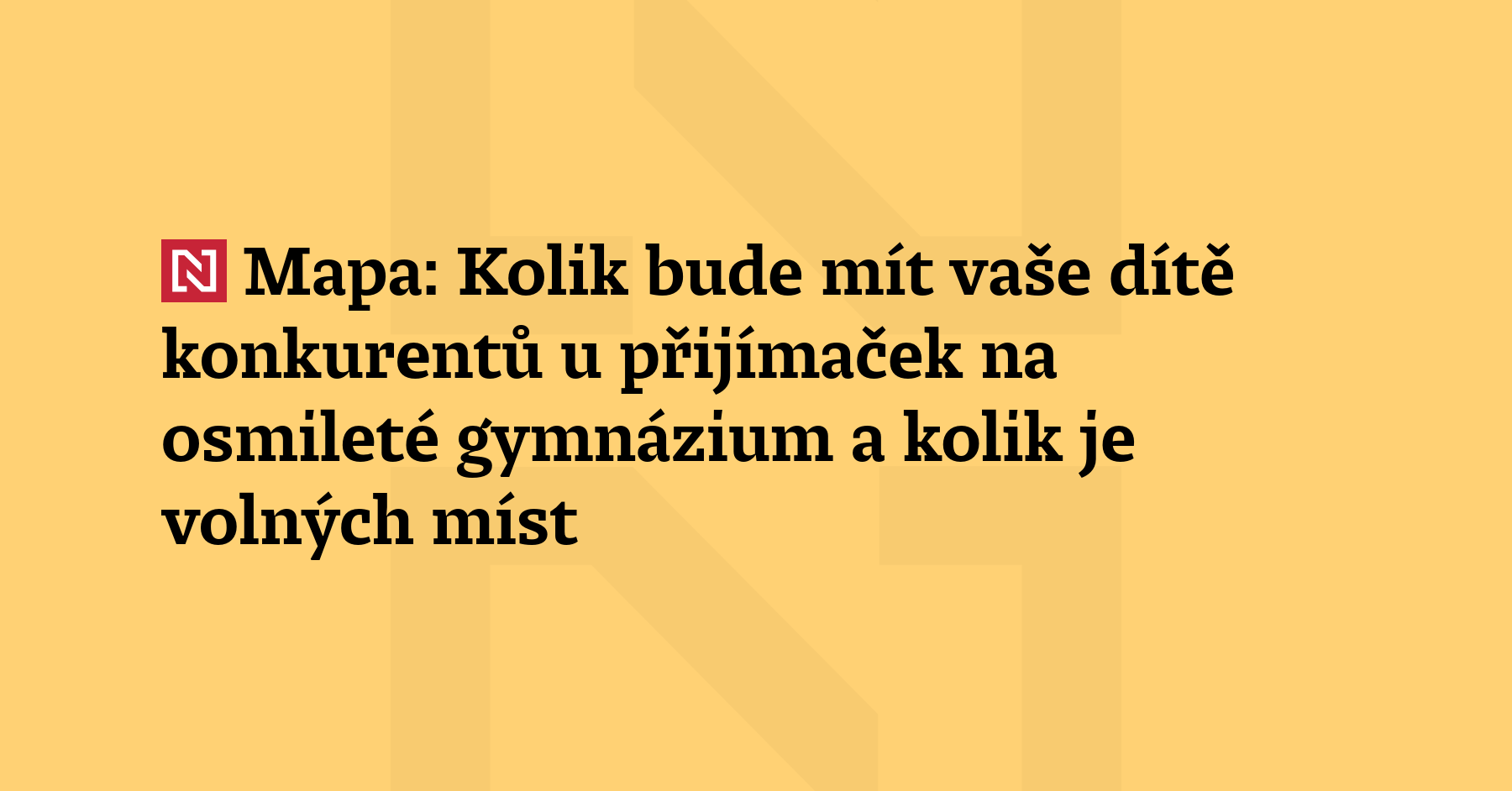 Devatenáct tisíc páťáků čekají 14. a 15. dubna přijímačky na osmiletá gymnázia. V interaktivní mapě Deníku N si můžete najít konkrétní školu s letošním zájmem uchazečů a jeho kapacitou.