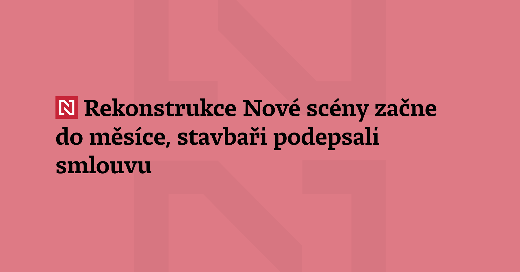 Zástupci Národního divadla (ND) v Praze podepsali minulý týden smlouvu na rekonstrukci Nové scény ND. Divadlo v únoru potvrdilo jako vítěze tendru sdružení firem Metrostav DIZ, OHLA ŽS a Trigema s nabídkou 1,8 miliardy korun bez DPH. Práce podle mluvčího ND Tomáše Staňka začnou do konce března. (ČTK)