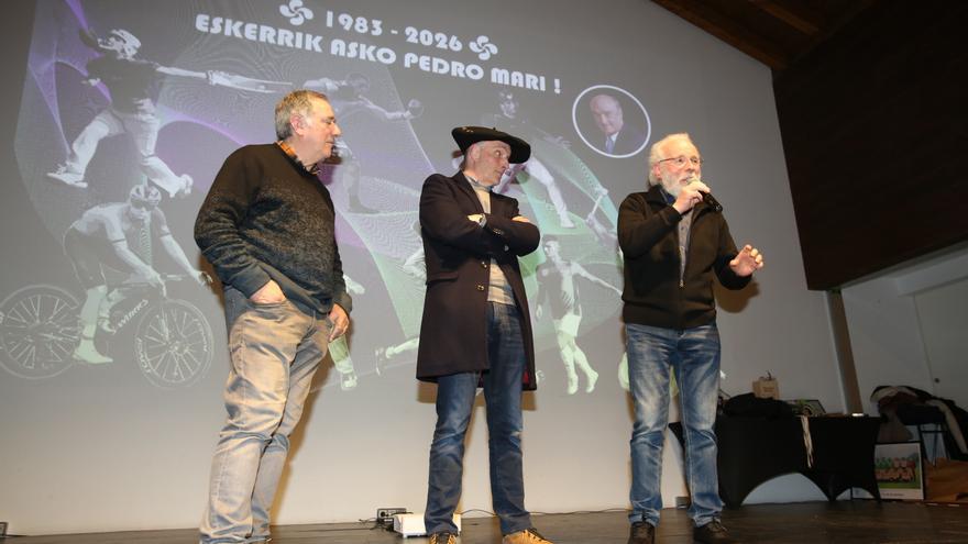 El pasado sábado 28 de febrero en el Baserri Antzokia de Derio a las 18.30 entró el homenajeado a una sala en la que no esperaba más que saludar a algún amigo de Lezama. Y se encontró con la ovación de auténticas leyendas de nuestro deporte.
