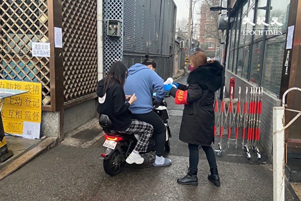 2020年2月,北京簋街所有餐饮店铺全部关门,只有一些小型超市开门。胡同口临时设置了检查岗,行人出入都要证件。(大纪元)