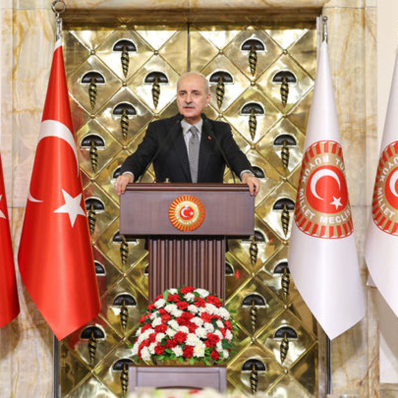 TBMM Başkanı Numan Kurtulmuş, "Türkiye'de artık terörün, silahın, çatışmanın ve şiddetin yeri olmasın. Türkiye'de bu aziz milletin arasında hiçbir şekilde bir daha kardeş kavgası olmasın, hiçbir şekilde güvensizlik olmasın" dedi