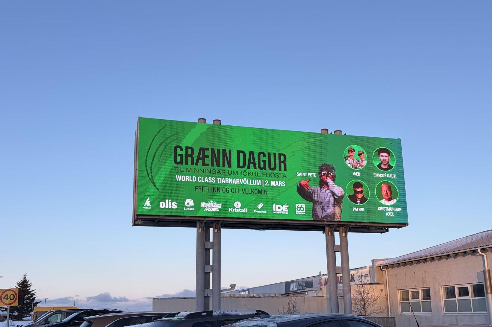 Jökull Frosti Sæberg Daníelsson hefði orðið níu ára í dag. Af því tilefni gaf fyrirtækið Billboard Græna deginum, sem haldinn er í minningu Jökuls, níu mínútur á auglýsingaskiltum höfuðborgarsvæðisins, frá klukkan 9 til 9.09.
