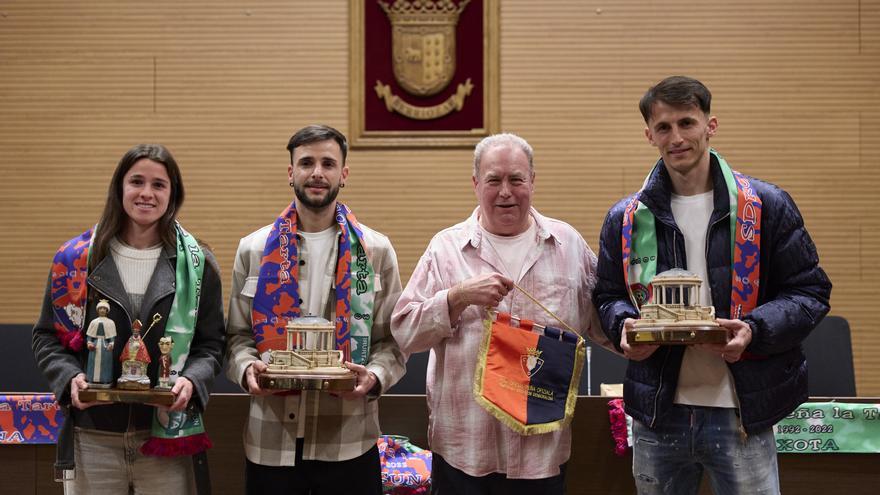 La Peña La Tarta de Berriozar celebró ayer la entrega del XXVII Trofeo Patxitxi en el salón de plenos del Ayuntamiento de Berriozar, donde se reconoció el rendimiento deportivo de Ante Budimir, delantero de Osasuna; Asier Llamas, portero de Osasuna Magna Xota; y Saioa Larumbe, lateral izquierdo de Osasuna Femenino.