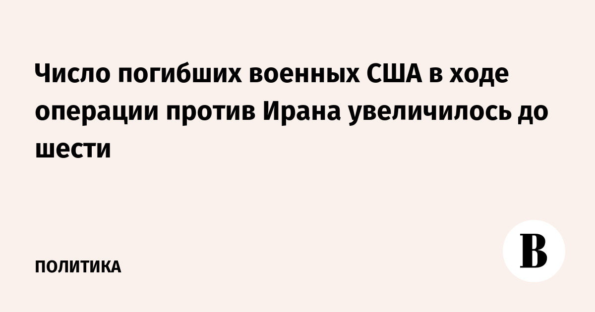 Число погибших военных США в ходе операции против Ирана увеличилось до шести