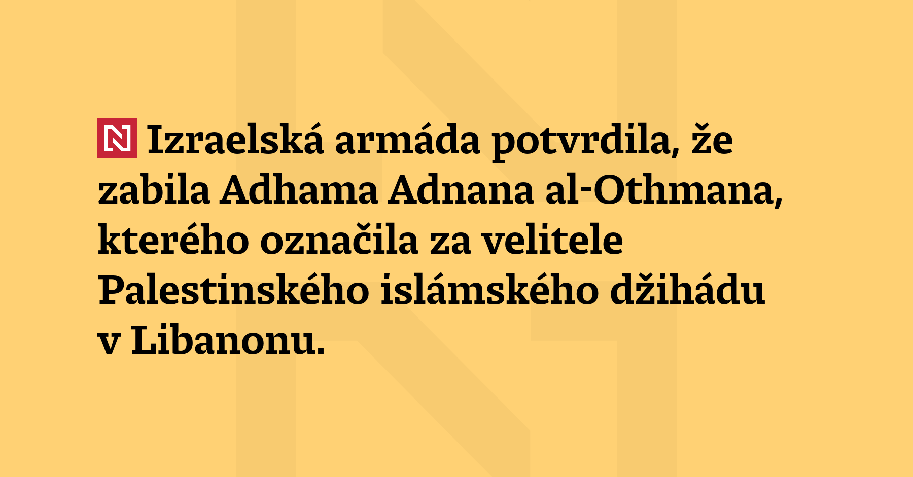 Izraelská armáda potvrdila, že zabila Adhama Adnana al-Othmana, kterého označila za velitele Palestinského islámského džihádu v Libanonu. Oznámení přichází poté, co Brigády Al-Kuds, ozbrojené křídlo Palestinského islámského džihádu, prohlásily, že al-Othman byl včera večer zabit. Ve svém prohlášení izraelská armáda uvedla, že několik let zastával funkci velitele a byl zodpovědný za plánování útoků proti Izraeli. V poslední době […]