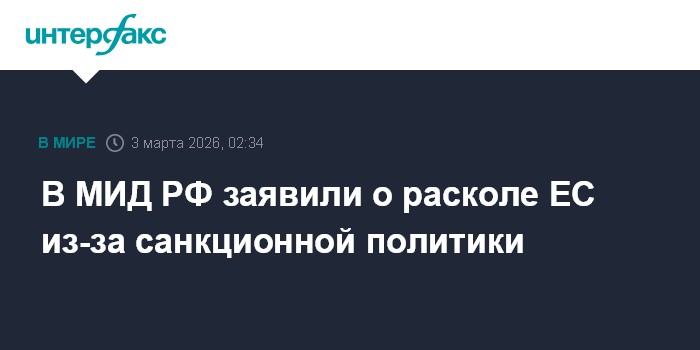 В МИД РФ заявили о расколе ЕС из-за санкционной политики