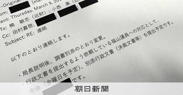 森友文書、6回目の開示へ 前回は佐川氏の改ざん関与示すメール判明