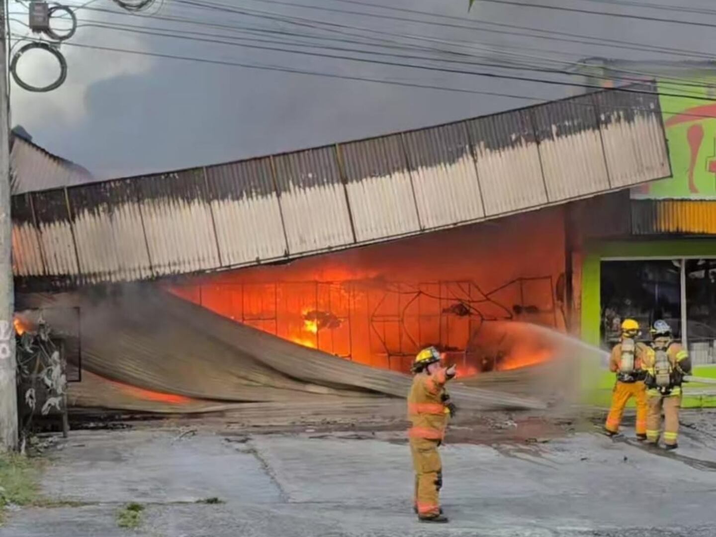 El Cuerpo de Bomberos atiene un incendio en un local comercial en Paso Canoas, en Corredores de Puntarenas, específicamente en la zona fronteriza.