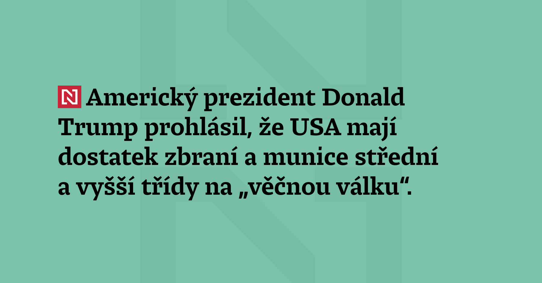 Americký prezident Donald Trump prohlásil, že USA mají dostatek zbraní a munice střední a vyšší třídy na „věčnou válku“. Ve svých prohlášeních také obviňuje svého předchůdce Joea Bidena z toho, že Ukrajině dodal „příliš mnoho supermoderních“ amerických zbraní. (BBC)