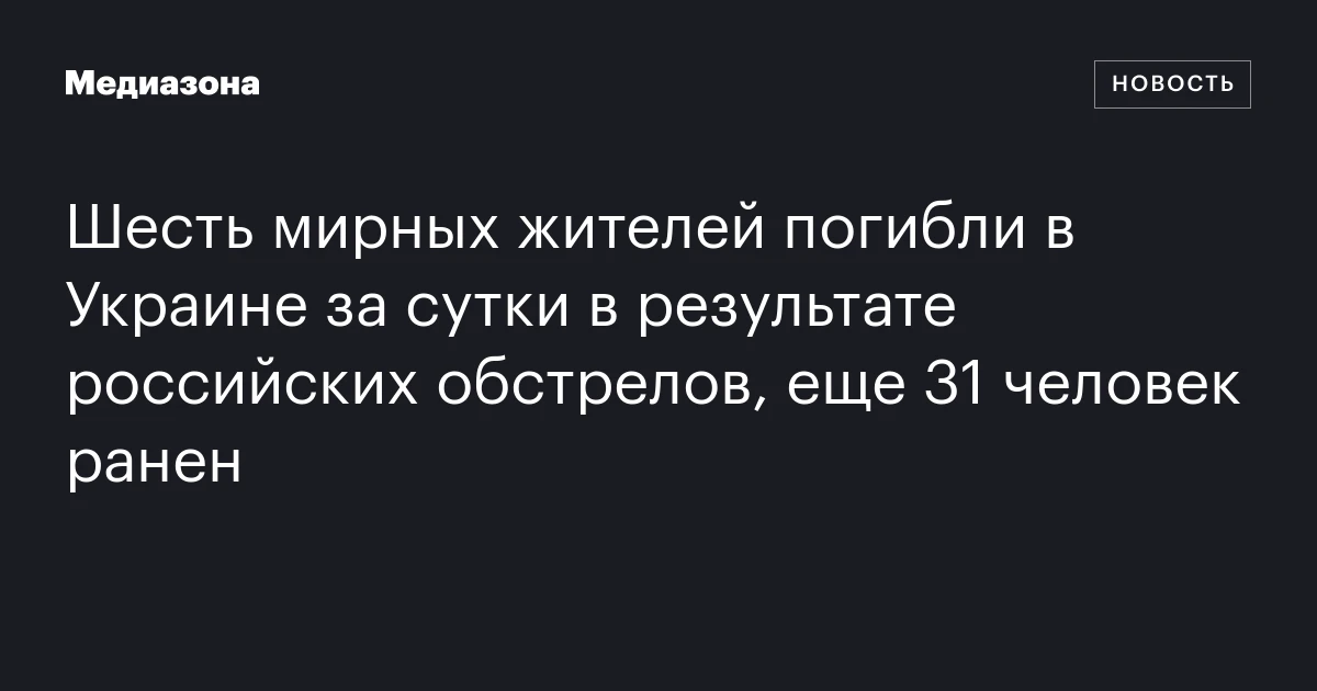 Шесть мирных жителей погибли в Украине за сутки в результате российских обстрелов, еще 31 человек ранен