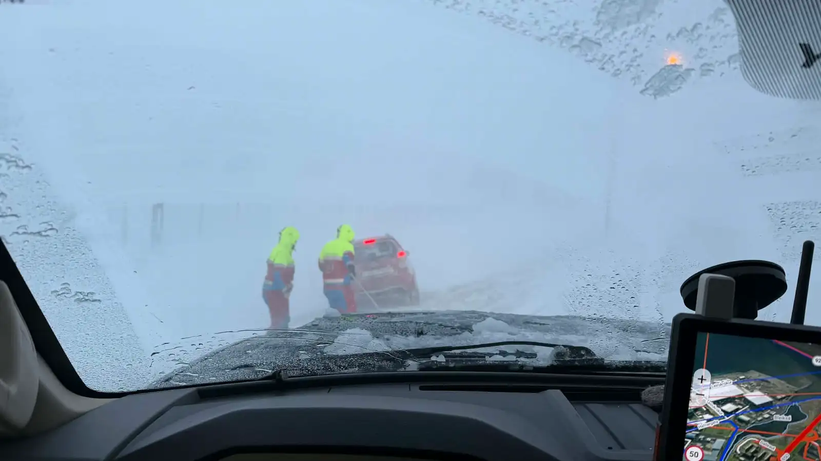 Óveður gærdagsins á austanverðu landinu er gengið yfir en afleiðingarnar blasa enn við því flestir helstu vegir frá Höfn á Hornafirði og norður um eru lokaðir eða ófærir. Samkvæmt upplýsingum frá Vegagerðinni er staðan á Norðausturlandi þannig að vegir eru lokaðir um Mývatns- og Möðrudalsöræfi, Vopnafjarðarheiði og Hófaskarð. Ófært er á Hólasandi, Kelduhverfi, Hólaheiði og milli Þórshafnar og Vopnafjarðar. Snjóþekja eða hálka er á flestum öðrum leiðum. Á Austurlandi eru vegirnir um Fjarðarheiði og frá Djúpavogi að Höfn lokaðir. Þæfingur er á Fagradal ásamt skafrenningi og einbreiðum köflum; þæfingur er í Norðfirði. Ófært er víða, meðal annars um Vatnsskarð eystra, Öxi og Breiðdalsheiði. Snjóþekja er á Öxnadalsheiði og Ólafsfjarðarvegi og Víkurskarði hefur verið lokað vegna snjóa. Annars staðar á landinu er víða hálka á vegum.