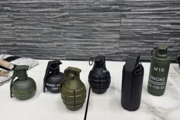 高市刑大查扣疑似手榴弹4颗,经鉴定是模型玩具。(高市刑大提供)