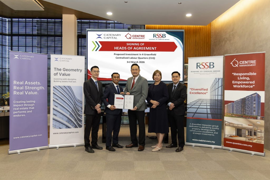 PETALING JAYA: Catenary Capital Sdn. Bhd. memeterai Perjanjian Dasar (HoA) bersama Rivertree STF Synergies Berhad (RSSB) bagi membangunkan kemudahan Penginapan Pekerja Berpusat (CLQ) di Lembah Klang dengan nilai pembangunan kasar (GDV) RM600 juta. Projek tersebut merangkumi pembinaan empat fasiliti CLQ yang mampu memuatkan sehingga 28,800 katil, sebagai menyahut permintaan tinggi terhadap penginapan pekerja yang mematuhi ... Read more The post Rivertree bangunkan kuarters pekerja di Lembah Klang bernilai RM600 juta appeared first on Utusan Malaysia .