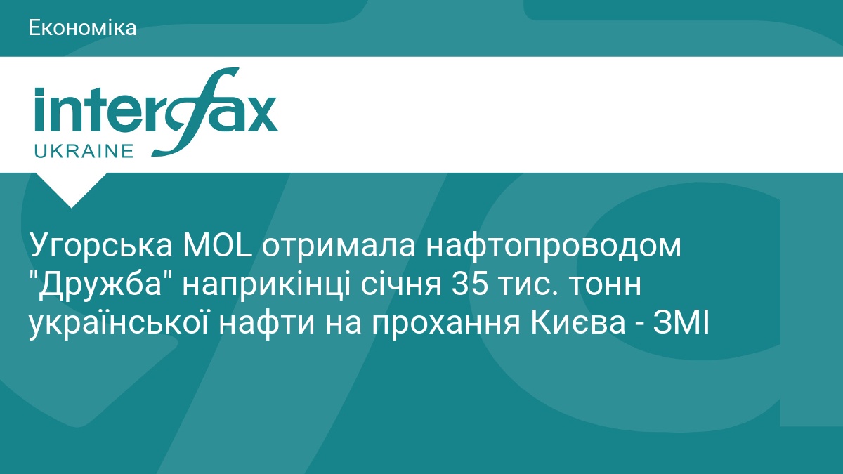 Угорська MOL отримала нафтопроводом "Дружба" наприкінці січня 35 тис. тонн української нафти на прохання Києва - ЗМІ