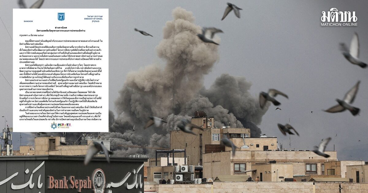 สถานทูตอิสราเอลประจำประเทศไทย แจงปฏิบัติการร่วมกับสหรัฐ เพื่อขจัดภัยคุกคามจากอิหร่าน