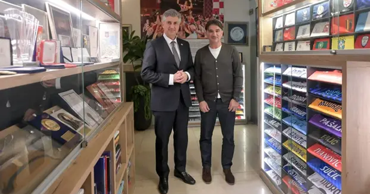Na fotografiji objavljenoj na službenom Instagram profilu restorana, premijer Plenković i izbornik Dalić slikali su s nasmiješeni, okruženi velikom zbirkom nogometnih memorabilija koje krase unutrašnjost objekta
