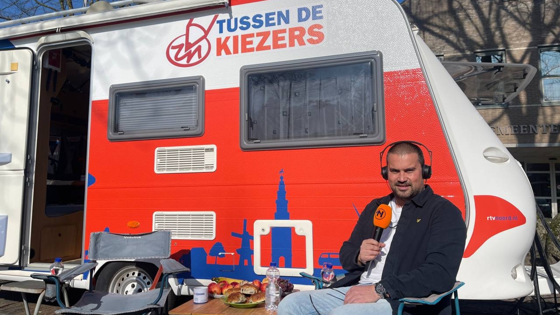 Niiwino Geertsema toert met een caravan door onze provincie vanwege de gemeenteraadsverkiezingen. Van Pekela tot Groningen: elke dag stallen we onze caravan in de buurt van een gemeentehuis om te praten met inwoners, de burgemeester en kandidaat-raadsleden. Vandaag zijn we in Sellingen.