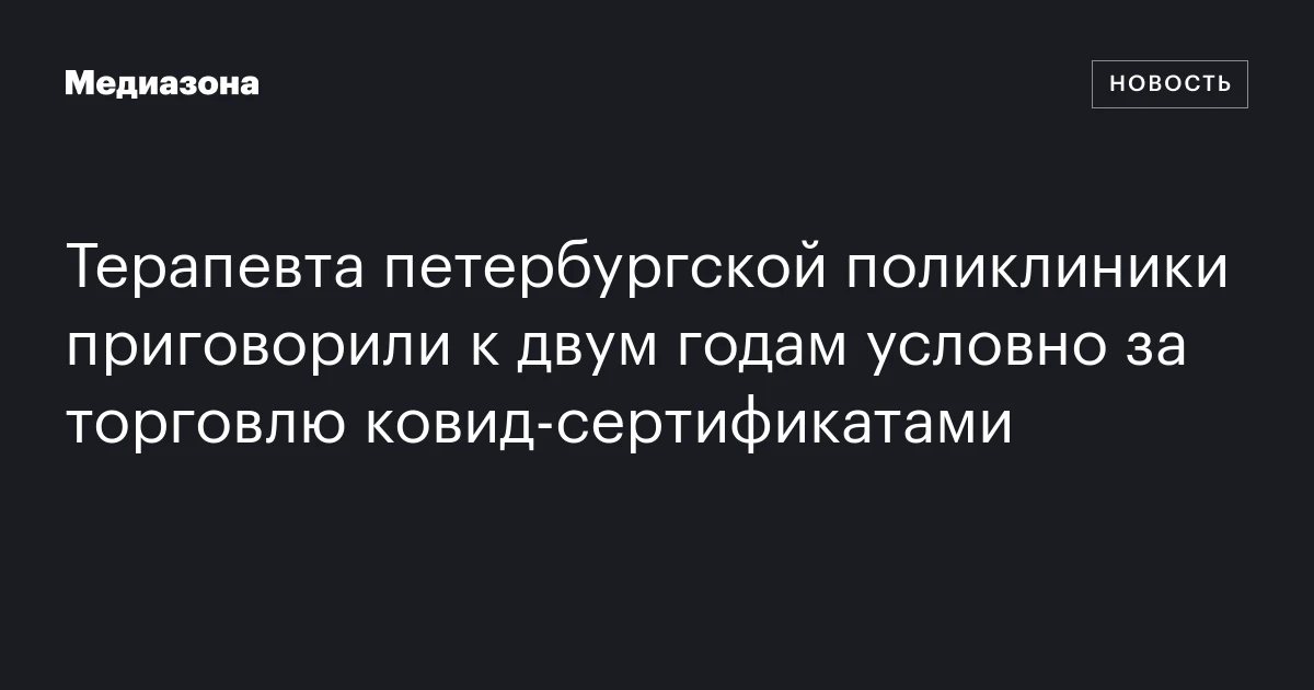 Терапевта петербургской поликлиники приговорили к двум годам условно за торговлю ковид‑сертификатами