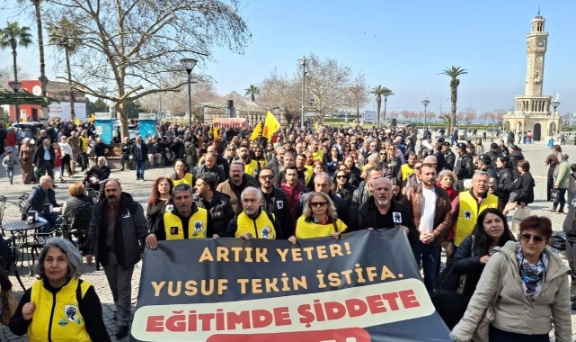 İstanbul Çekmeköy’de öğretmen Fatma Nur Çelik'in hayatını kaybettiği, iki öğretmen ile bir öğrencinin yaralandığı bıçaklı saldırının ardından İzmir’de Eğitim Sen ve Hürriyetçi Eğitim Sen üyeleri iş bırakarak sokaklara döküldü. Konak’tan İl Milli Eğitim Müdürlüğü’ne yürüyen eğitimciler, artan okul şiddetine karşı acil ve kalıcı önlem alınması amacıyla çağrı yaptı.
