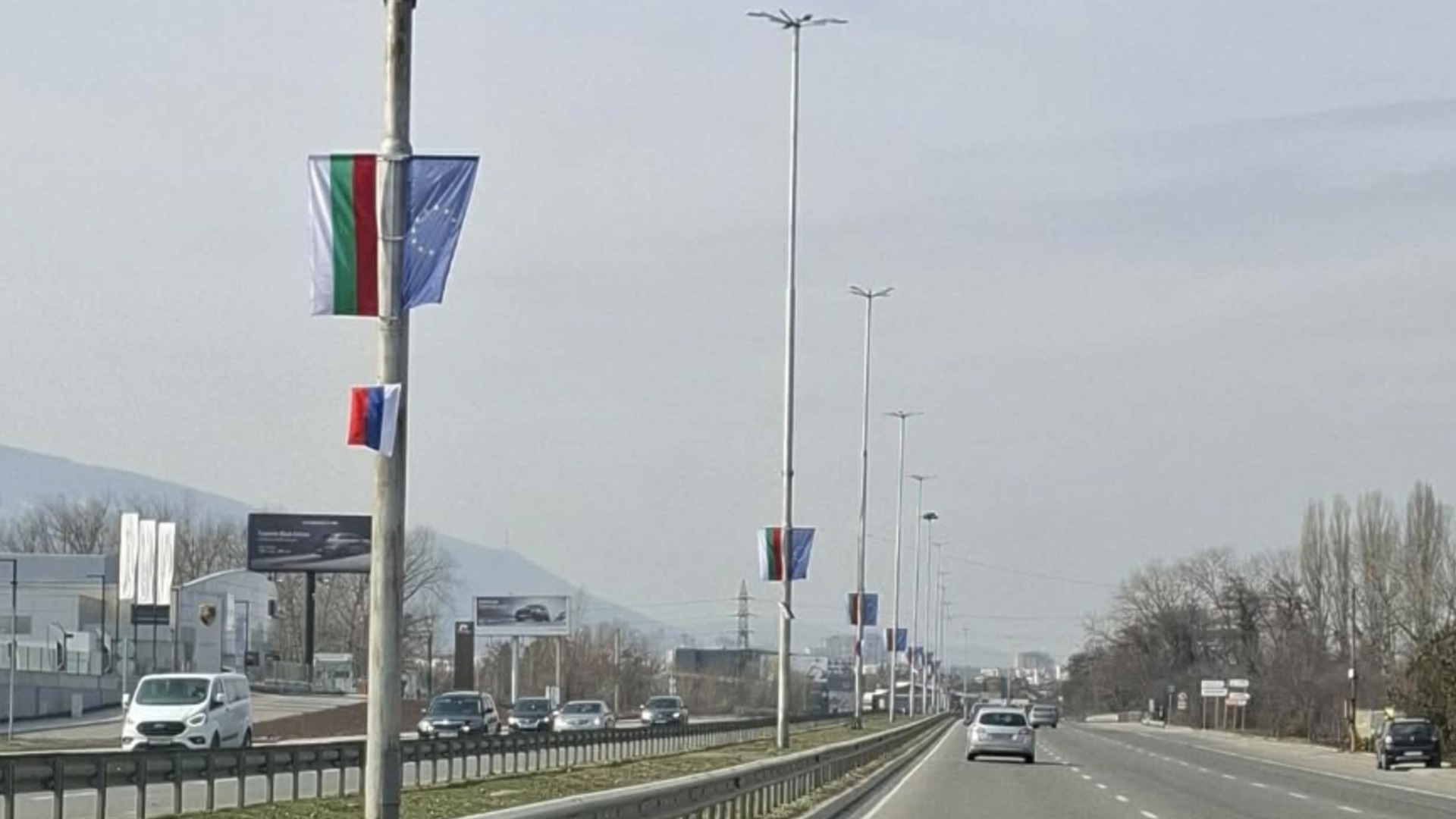 Руски знамена бяха залепени с подръчни материали поне на три стълба по столичния бул. "Цар Освободител", съобщи читател ...