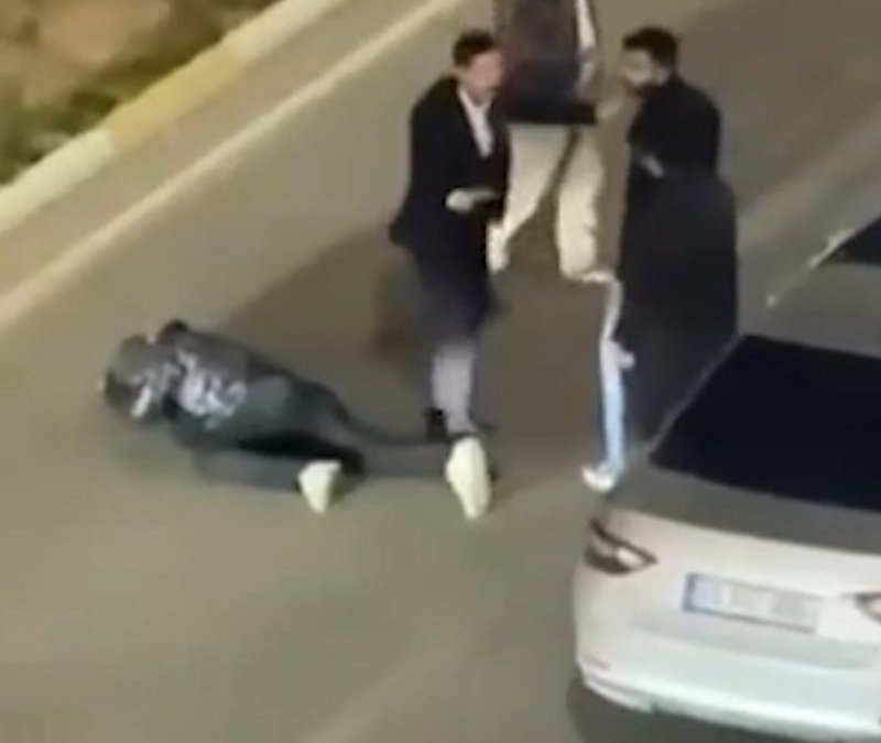 Bir grup, durdurdukları otomobilin sürücüsünü araçtan indirip, tekme, tokat ve sopa ile darbetti. O anlar, cep telefonu kamerasına yansıdı.