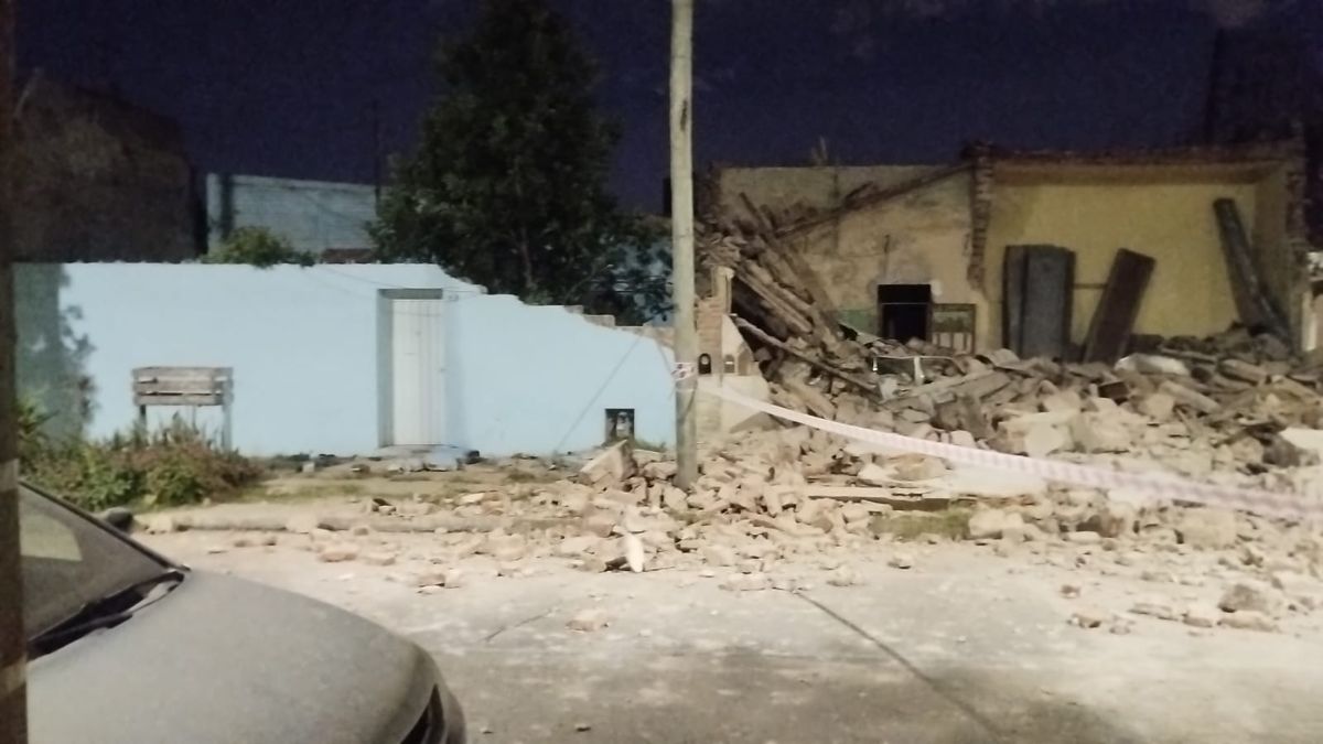 Un auto antiguo de alta gama quedó aplastado por los escombros. Bomberos y personal policial trabajaron en el lugar para asegurar la estructura y realizar peritajes.