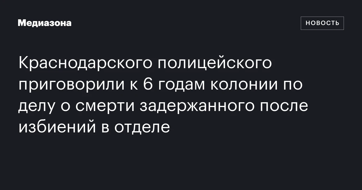 Краснодарского полицейского приговорили к 6 годам колонии по делу о смерти задержанного после избиений в отделе
