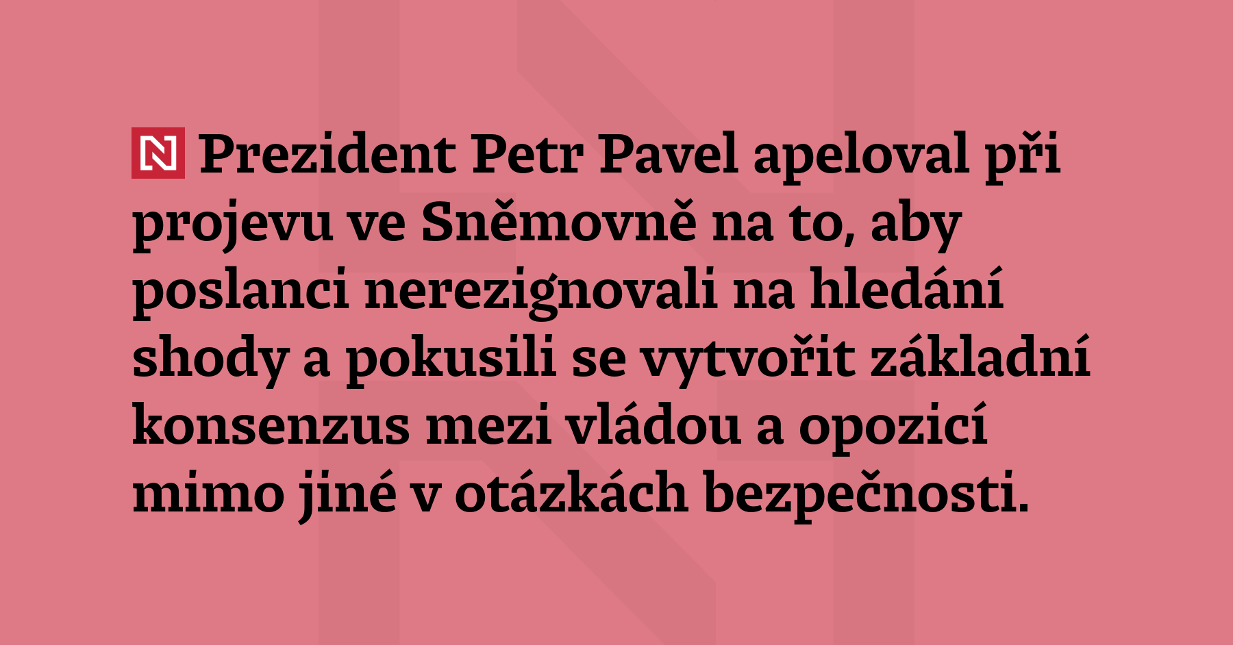 Prezident Petr Pavel apeloval při projevu ve Sněmovně na to, aby poslanci nerezignovali na hledání shody a pokusili se vytvořit základní konsenzus mezi vládou a opozicí mimo jiné v otázkách bezpečnosti. (ČT24)