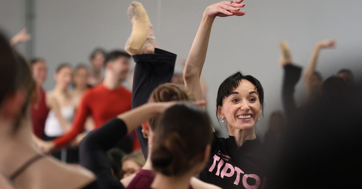 La directora del Tiptoe impulsado por el Teatro del Soho y Antonio Banderas ensaya una barra al aire libre con jóvenes bailarines