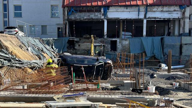 Auto in der Grube: Fahrerin stürzt mit Auto in Baugrube