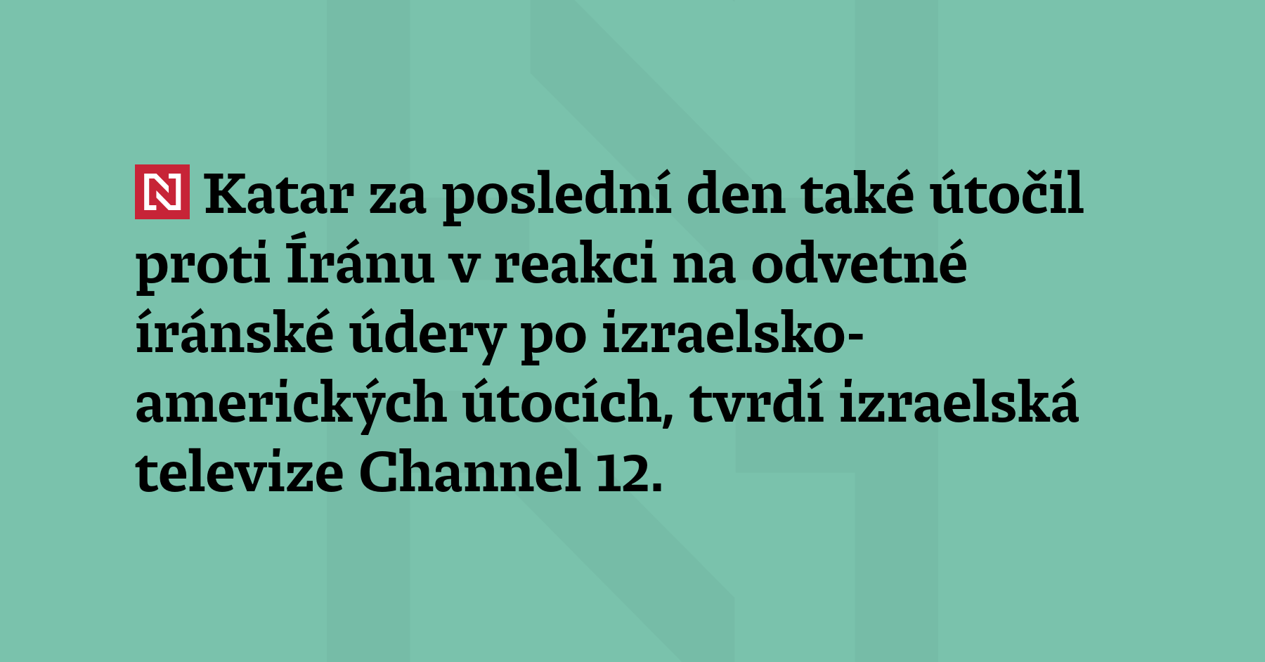 Katar za poslední den také útočil proti Íránu v reakci na odvetné íránské údery po izraelsko-amerických útocích, tvrdí izraelská televize Channel 12. (ČTK)