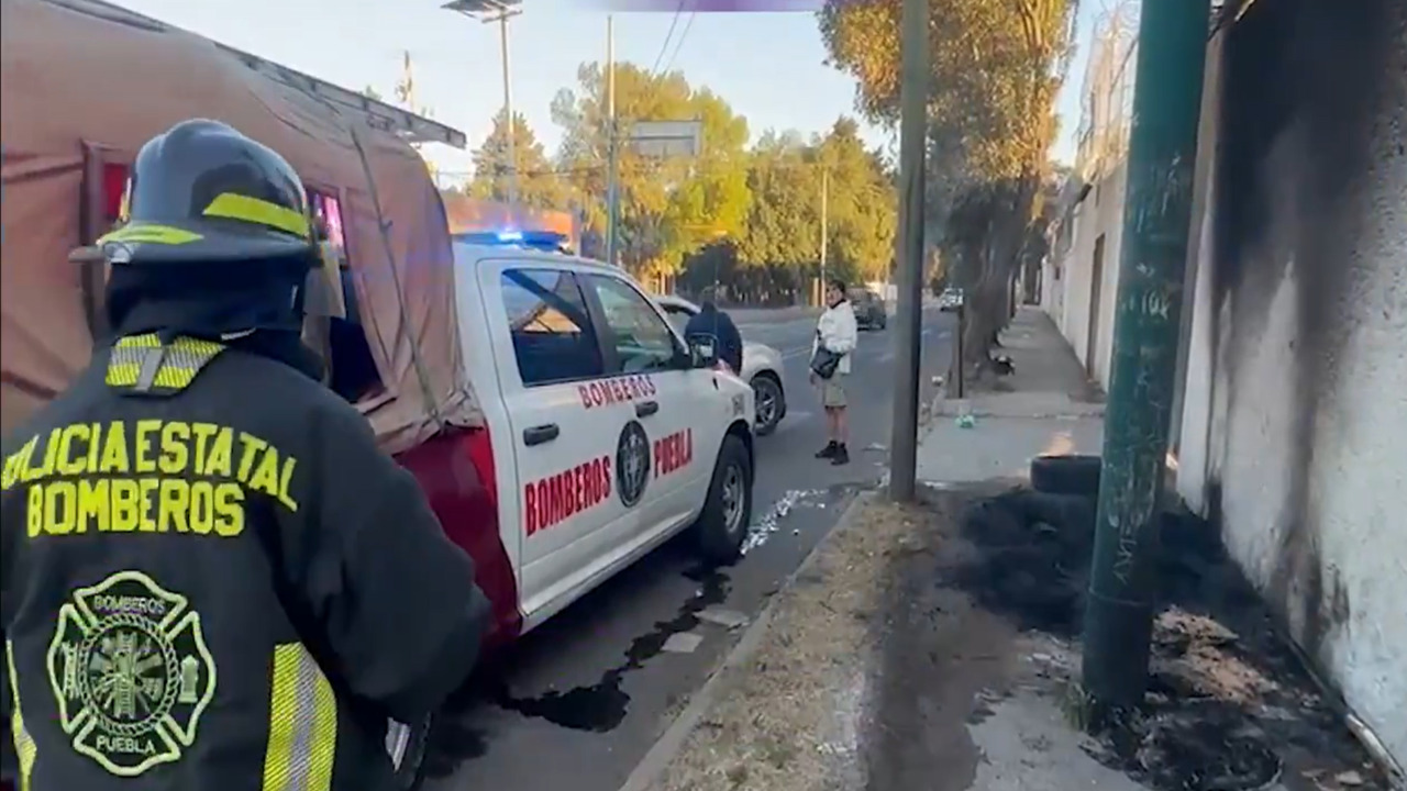 Un incendio poir quema de llantas en la avenida Héroe de Nacozari y 15 Norte provocó una intensa movilización y tráfico en la zona oriente de Puebla hoy 3 de marzo de 2026.