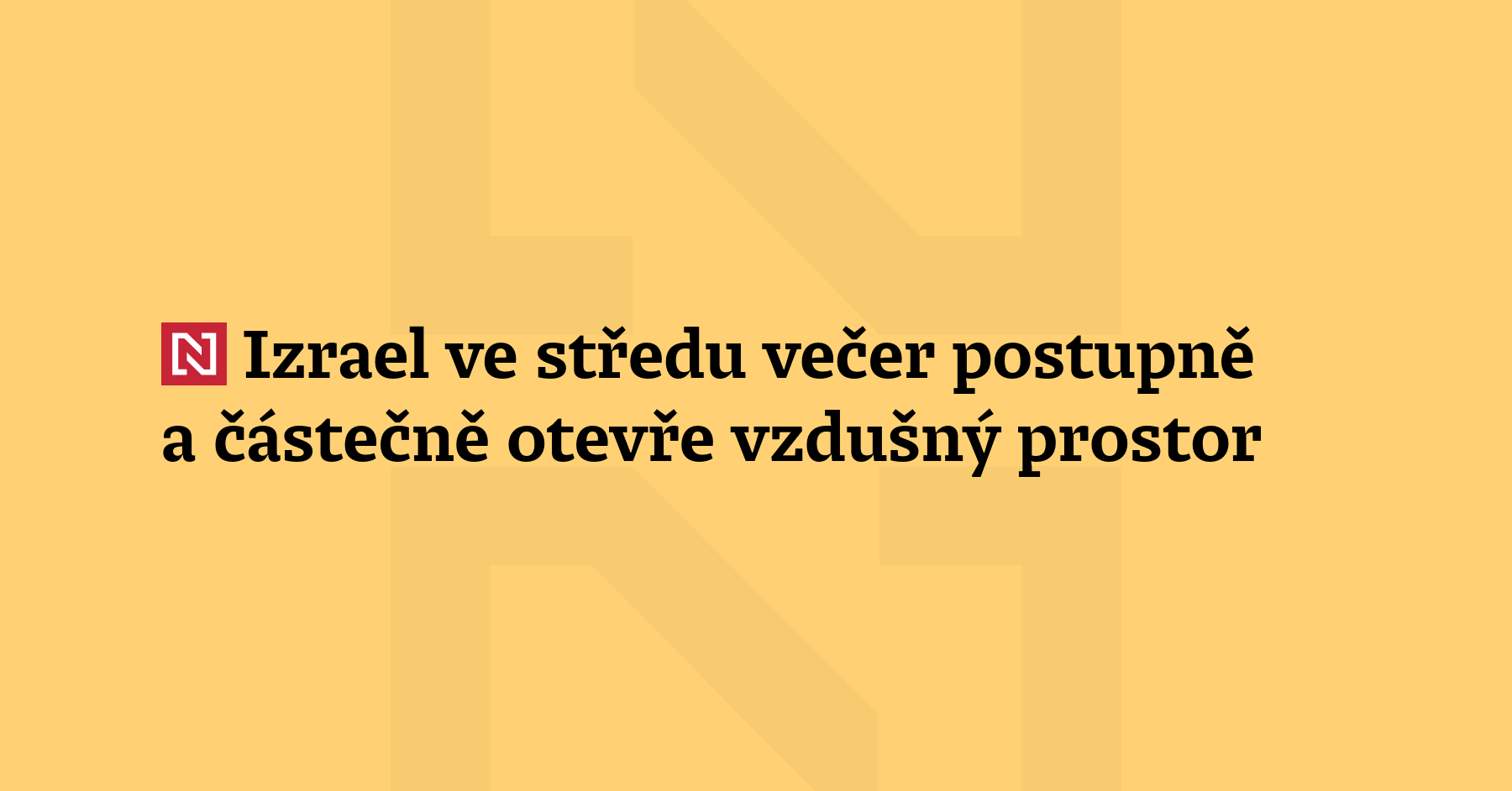 Izrael začne v noci ze středy na čtvrtek postupně a částečně znovu otevírat vzdušný prostor. Uvedlo to izraelské Ben Gurionovo mezinárodní letiště v Tel Avivu s tím, že však bude záležet na vývoji bezpečnostní situace. Vláda chce tak umožnit repatriační lety s vracejícími se Izraelci. (ToI)