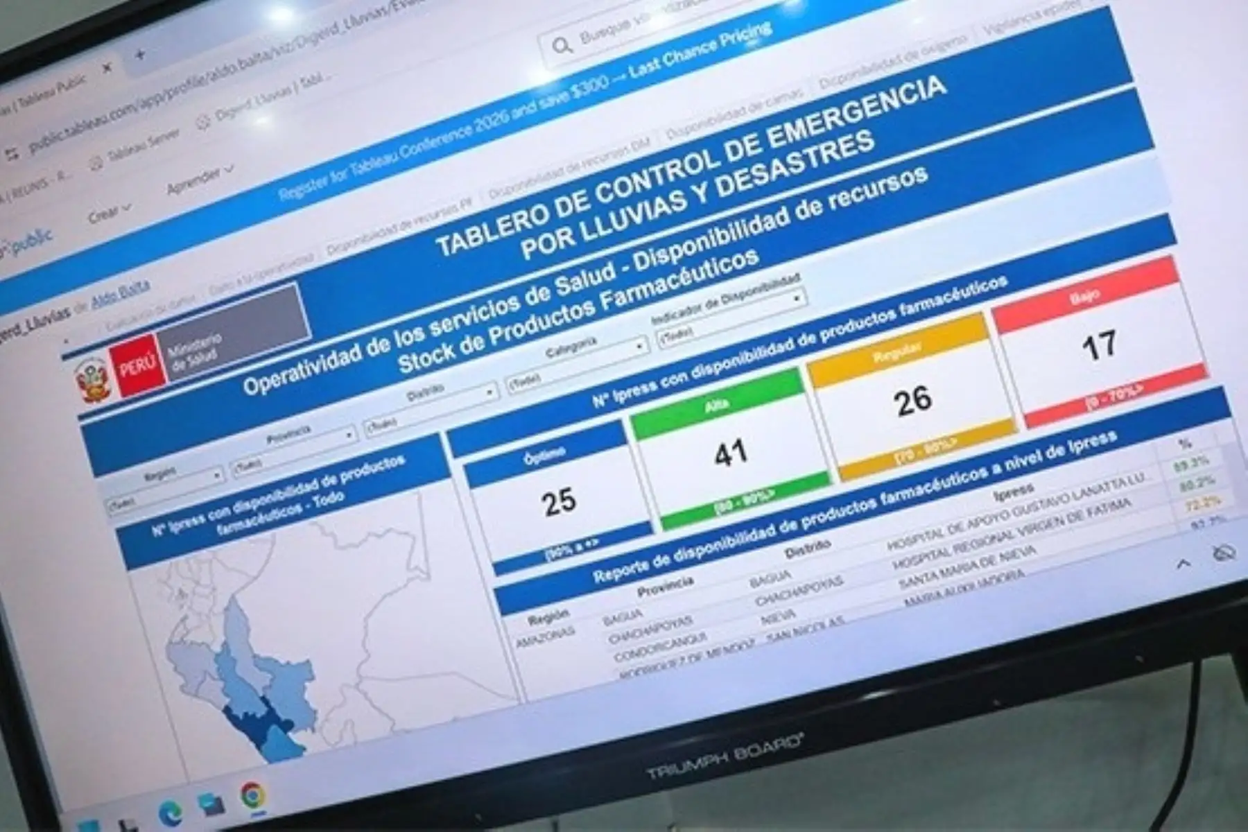 Como parte de las acciones ante el fenómeno El Niño, el Ministerio de Salud (Minsa) presentó el “Centro de Emergencia Sanitaria ante lluvias a nivel nacional”, una plataforma que consolida información actualizada en todo el país, informó dicho portafolio.