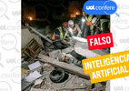 É falsa a imagem compartilhada nas redes sociais que supostamente mostra o momento em que o corpo do aiatolá Ali Khamenei, líder supremo do Iră, foi encontrado sob escombros.