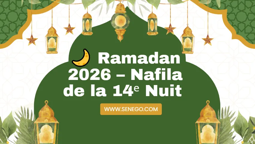 14ème NUIT : 8 rakkas, soit 4 sallamas. Dans chaque rakka, le croyant doit récité 1 fatiha et 07 fois «Izaa djaa na souroul lahi ».