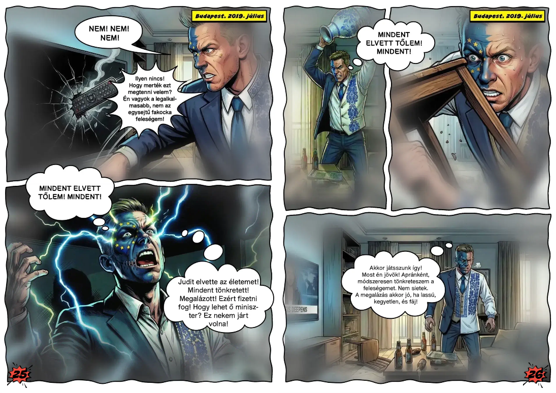 Megjelent az „Én, a kétarcú” című képregény. Az alsó tagozatos fogalmazásokat idéző párbeszédekkel megírt füzetben Magyar Péter figurája szörnyszülöttként tárgyal külföldi szereplőkkel, miközben terrorizálja a feleségét. Nehéz elképzelni, hogy a 2490 forintos képregényre lesz piaci kereslet.