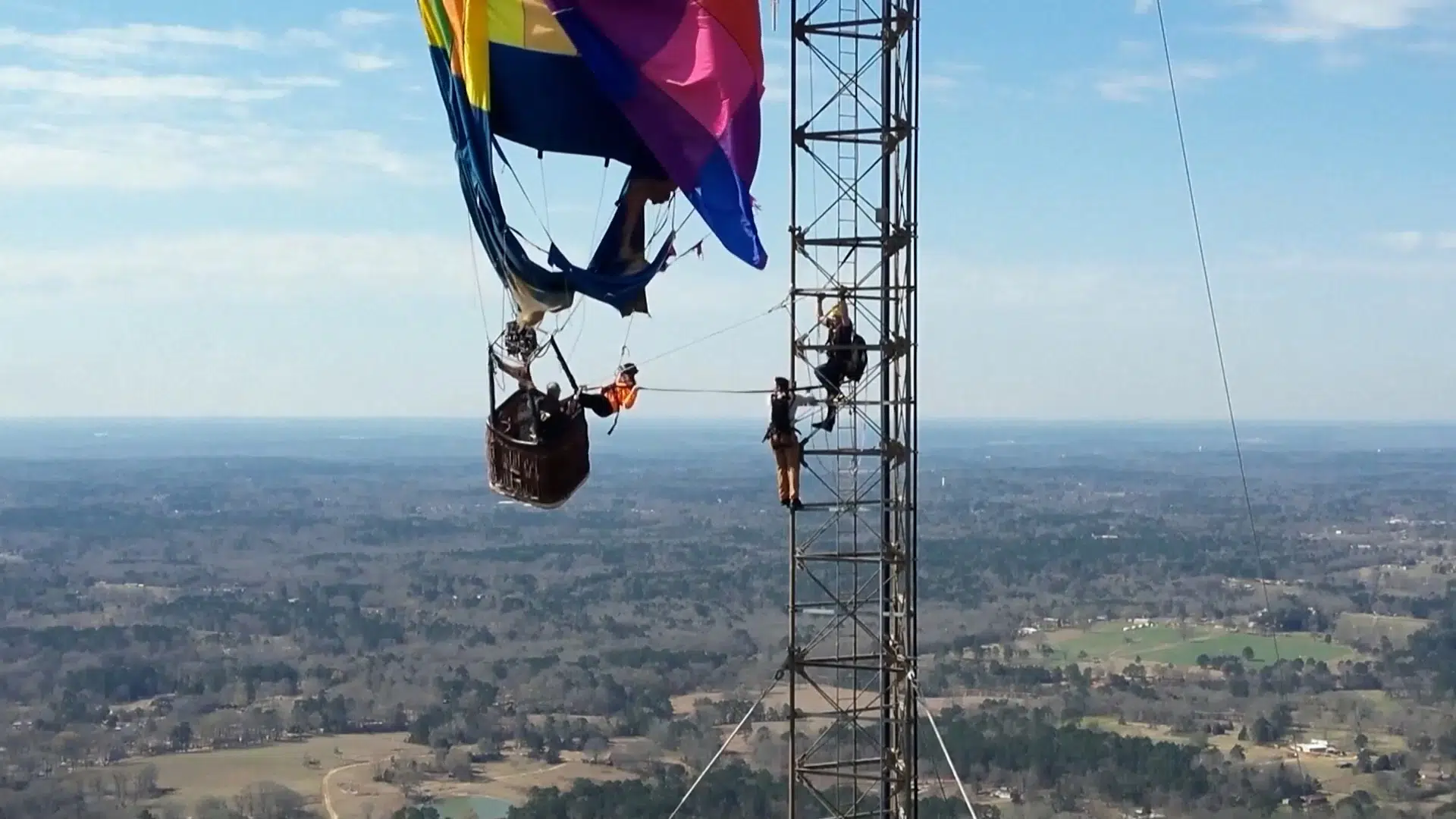 Vild redningsaktion: To person sad fast i luftballon 280 meter over jorden