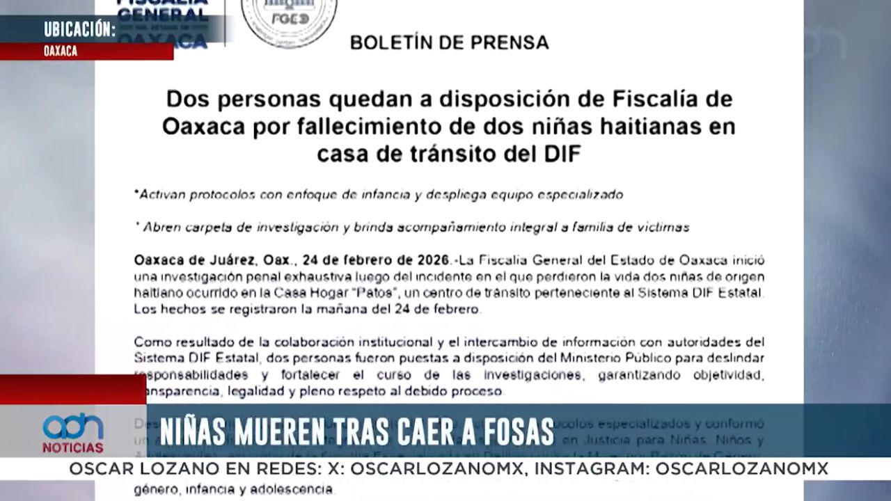 Dos niñas de origen haitiano murieron tras caer a una fosa séptica de una casa hogar en San Raymundo Jalpan, Oaxaca. Por estos hechos, dos personas fueron detenidas y destituyeron a tres funcionarias.