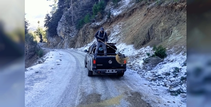 Alanya'da göçük nedeniyle bozulan yollarda onarım çalışmaları devam ediyor. Ekipler, güvenli ulaşım için yoğun çaba harcıyor.