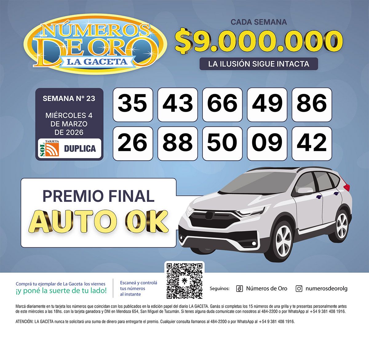 Los Números de Oro de LA GACETA del 4 de marzo de 2026